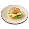 Innehåll: smörgåsmargarin (vegetabiliskt fett, syrat SKUMMJÖLK, salt, emulgeringsmedel:mono och dyglicerider av fettsyror(E471), konserveringsmedel, kaliumsorbat (E202), arom, färg:betacaroten), mozzarella (past. KOMJÖLK, ystenzym, citronsyra, salt), salami (fläskkött, fläsk, salt dextros, vitlök, socker, antioxideringsm. E300, konserveringsm. E250, färgämnen E120, startkultur, rök från bokspan), gurka, tomat, sallad, paprika.