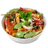 Innehåll: rökt skinka (helmuskelskinka, vatten, salt, druvsocker, E450, E 301, E 250, rökarom), vitlöksalami (fläskkött,fläsk, salt dextros, vitlök, socker, antioxideringsm. E300, konserveringsmedel E250, färgämnen E120, startkultur, rök från bokspan), rostbiff (nötkött, stärkelse, kryddor, naturlig arom, grönsaksjuice, salt, E 250, citron, peppar, koriander, kummin, lök, paprika) rökt kalkon (kalkonbröst, koksalt, druvsocker, maltodextrin, E460 ,E301, E331 , E250, rökarom), druvor, papaya, passionsfrukt, melon, sallad, tomater,physalis, kiwi.