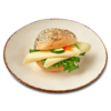 Innehåll: smörgåsmargarin (vegetabiliskt fett, syrat SKUMMJÖLK, salt, emulgeringsmedel:mono och dyglicerider av fettsyror(E471), konserveringsmedel, kaliumsorbat (E202), arom, färg:betacaroten), mozzarella (past. KOMJÖLK, ystenzym, citronsyra, salt), salami (fläskkött, fläsk, salt dextros, vitlök, socker, antioxideringsm. E300, konserveringsm. E250, färgämnen E120, startkultur, rök från bokspan), gurka, tomat, sallad, paprika.